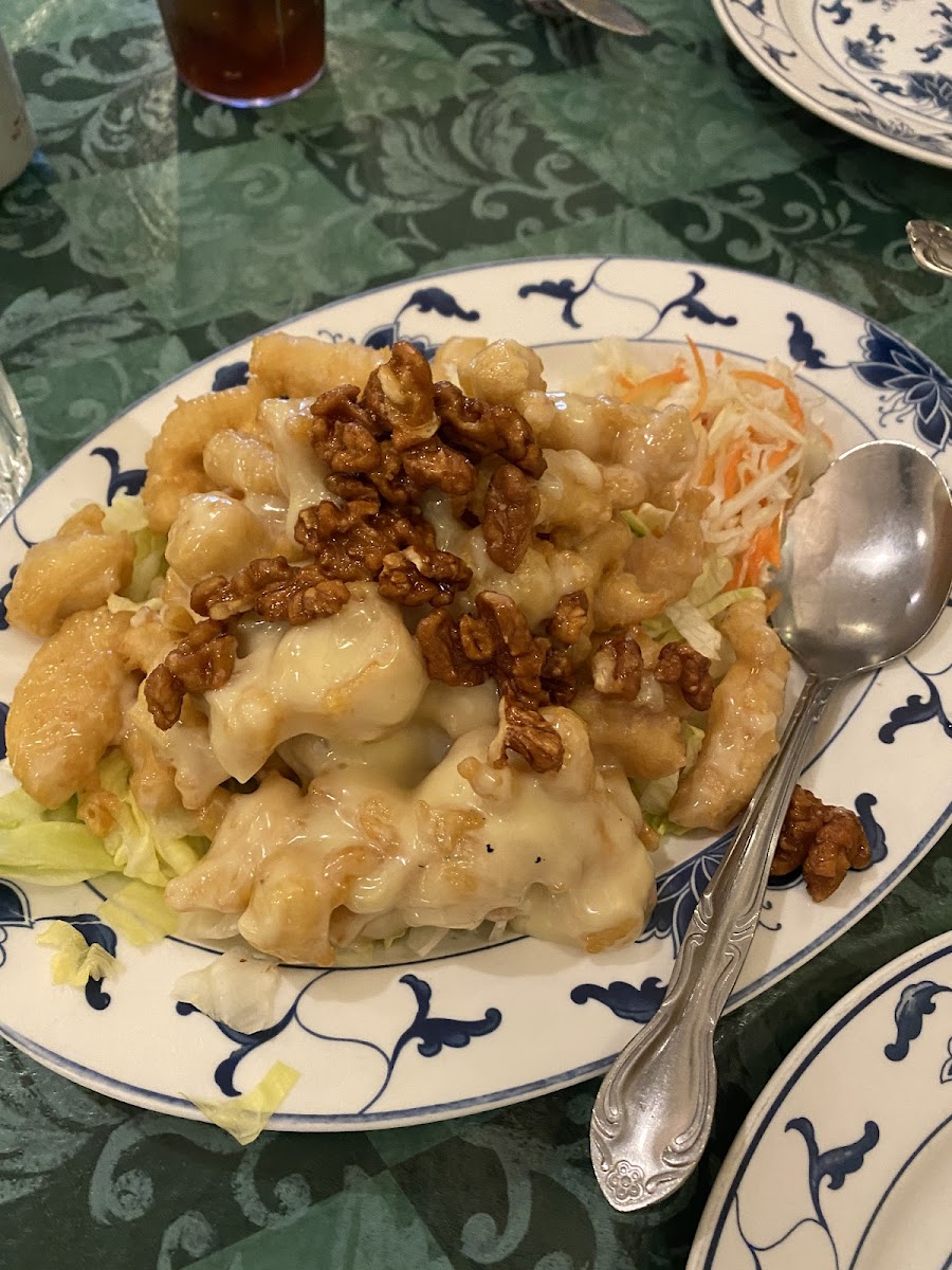 I love this place. Superb egg rolls. Scallion pancakes nice and light and airy. Walnut chicken had a white, slightly sweet sauce that was delicious. Pan fried noodles were crispy but not greasy and Mu shu pork was terrific. I’m coming back asap.